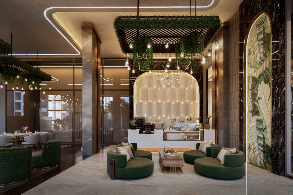 - High-end marble-inspired flooring and premium finishes